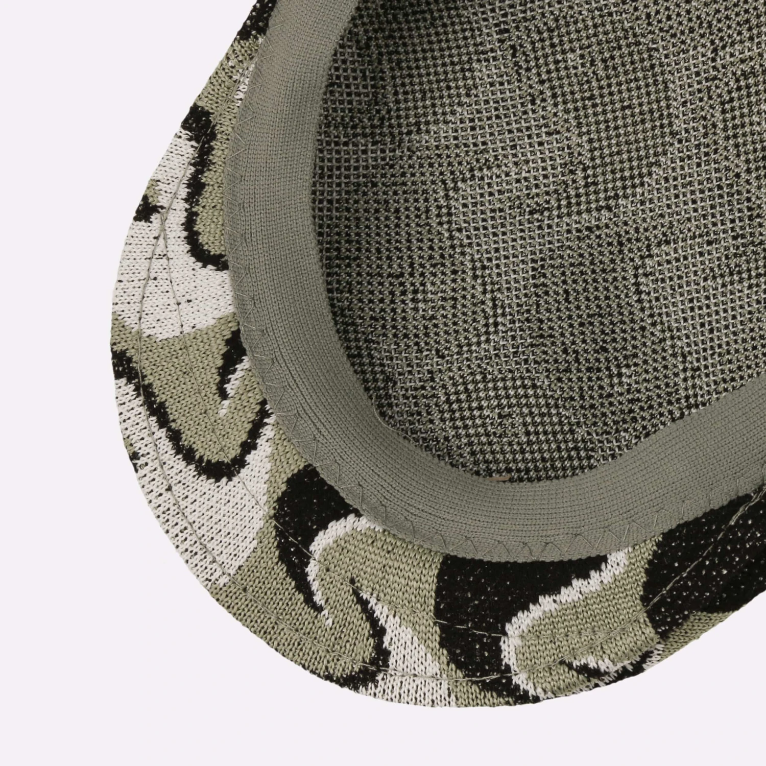 Kontrastierende Farben und dynamische Formen prägen die ausdrucksstarke Ausstrahlung der Flatcap von Kangol.