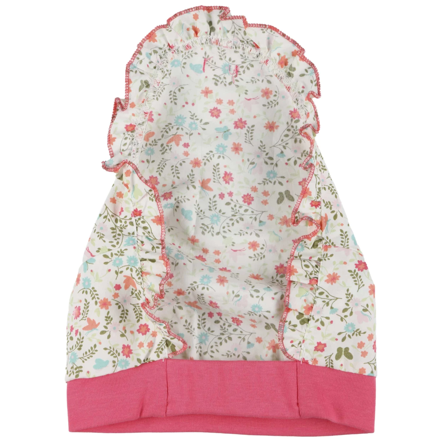 Der Allover-Print mit verspieltem Blumenmotiv verleiht dem hochwertigen Kinder-Accessoire eine romantisch anmutende Note – wunderbar für schöne Alltags-Outfits. Das bedruckte Tuch aus 100% Baumwolle ist an einem einfarbigen Baumwollband mit Elasthananteil befestigt. Die Öffnung am Hinterkopf sorgt für einen angenehmen Luftaustausch.