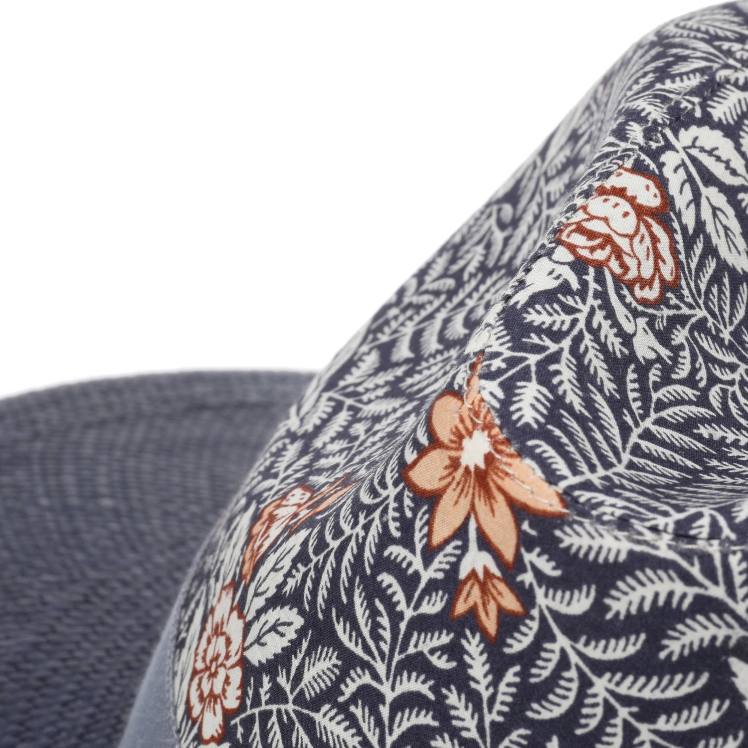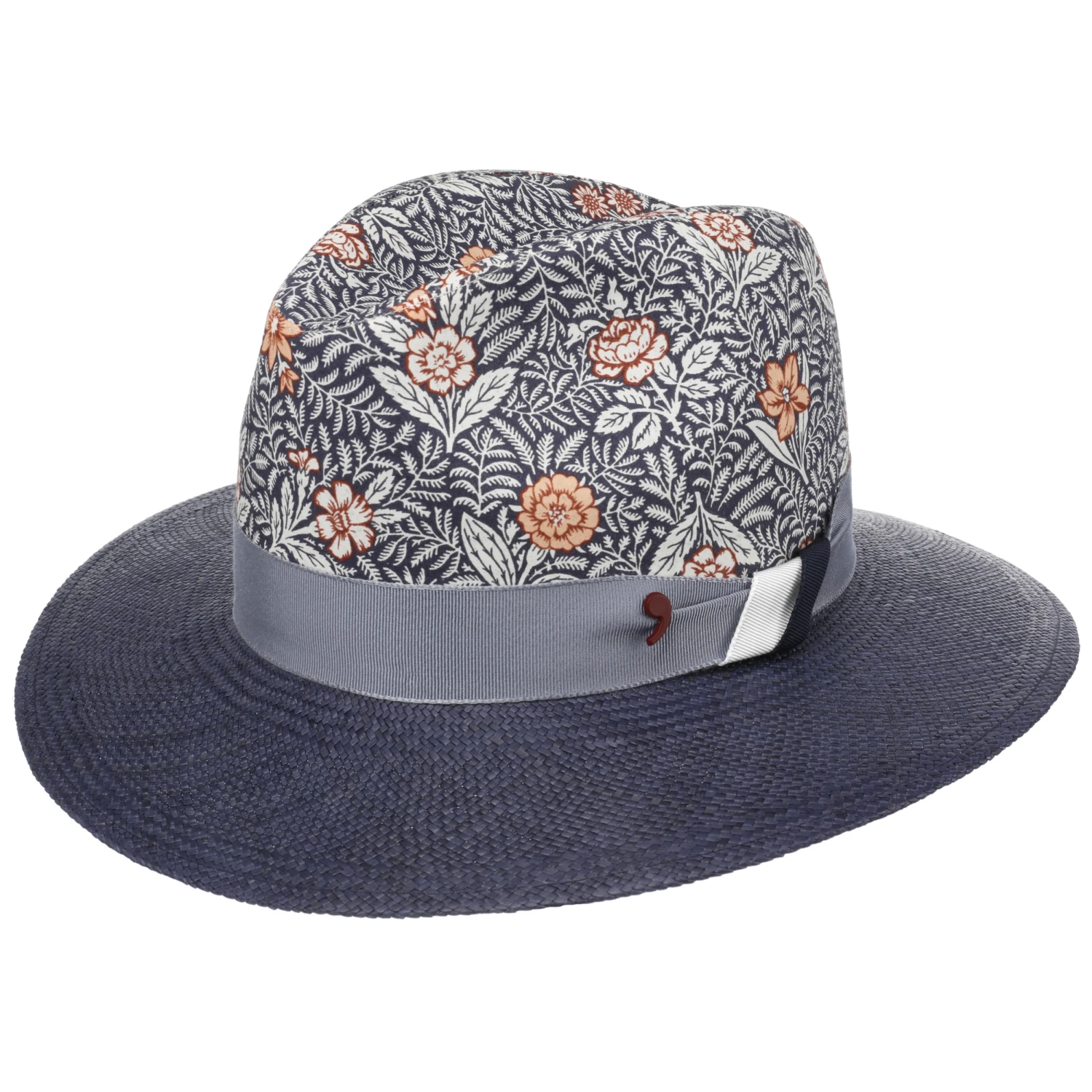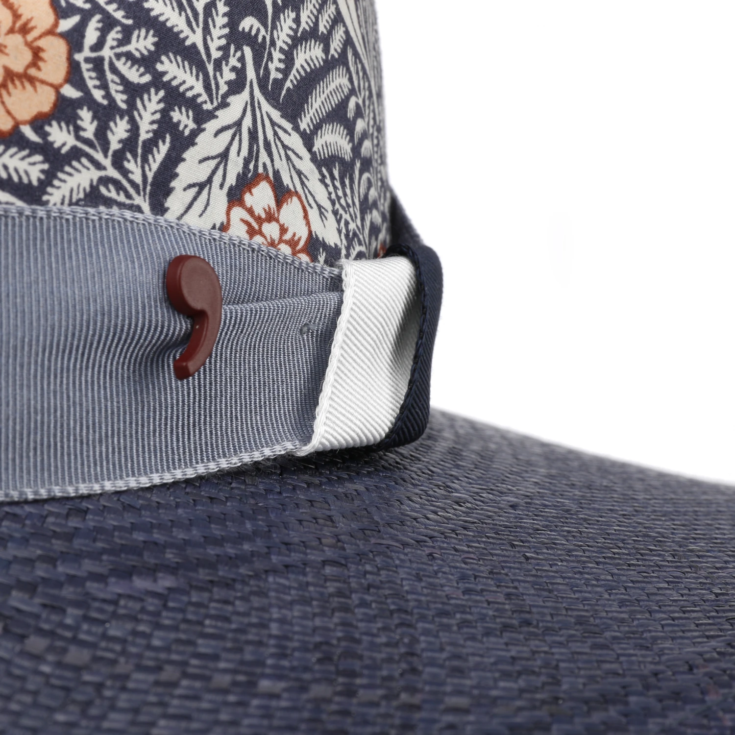 Der Sonnenhut von Alfonso D´Este hat sich für eine abwechslungsreiche sommerliche Materialkombination entschieden: Die unifarbene Krempe ist aus Panamastroh geflochten, darüber erhebt sich der aus Baumwolle gefertigte Kopfteil und zeigt selbstbewusst sein blumiges Design.