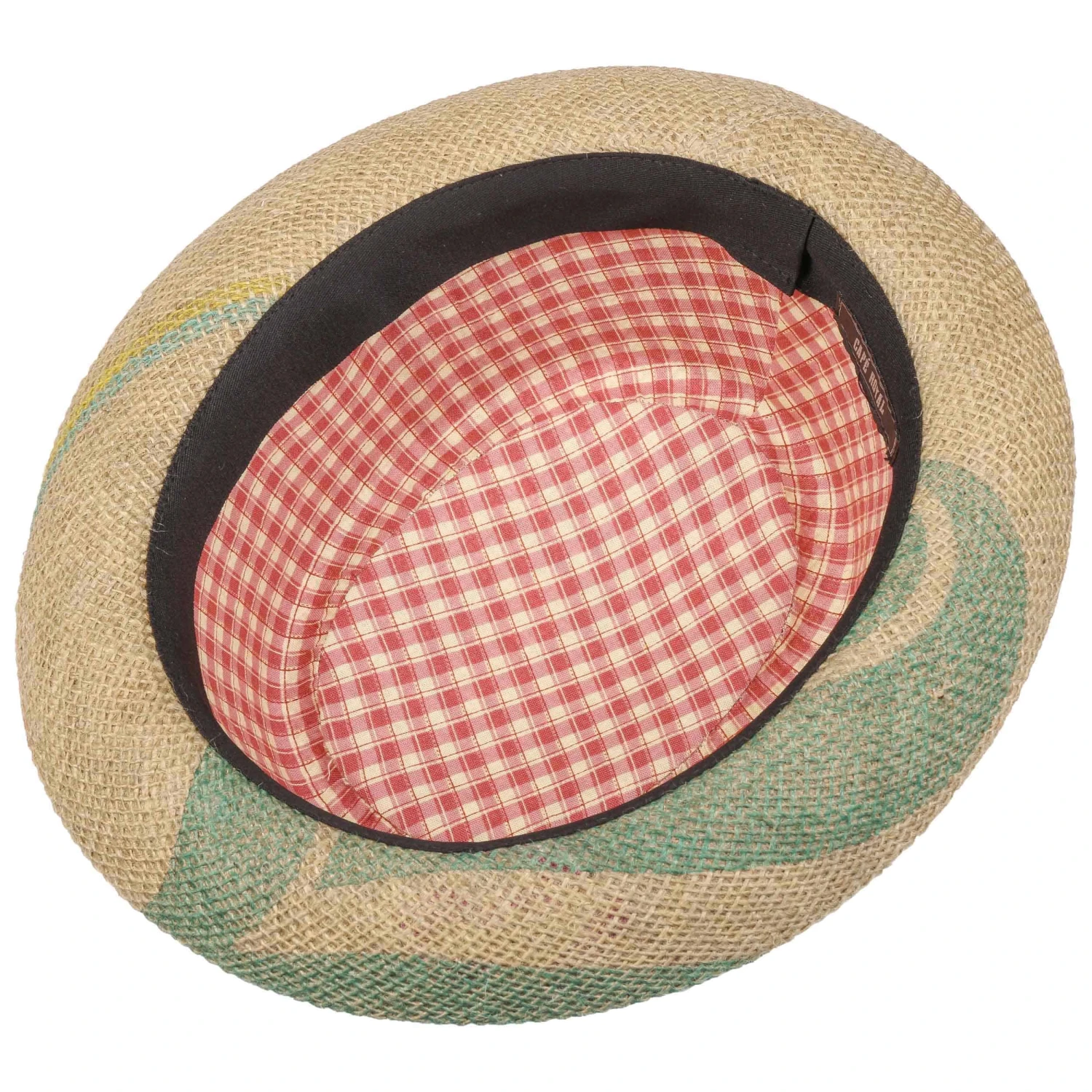 Ein farblich abgestimmtes Ripsband rundet das natürliche Design ab. Auf der Innenseite sorgt ein grün kariertes Futter aus 100% Baumwolle für hohen Tragekomfort. Lieferung inkl. schwarzem Ripsband, das optional als Garnitur um den Hut gelegt werden kann.