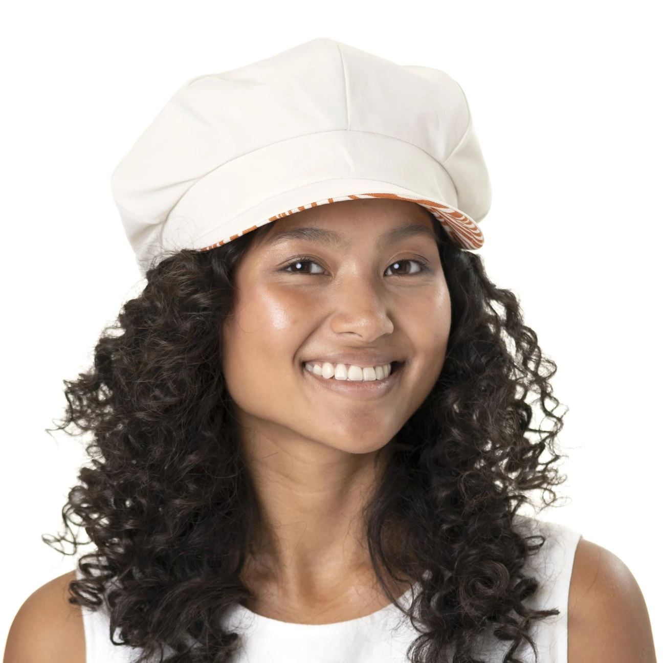 Die freundliche Baumwollstoff macht Laune und schirmt aggressive UV-Strahlen gleichzeitig mit Faktor 60 ab. Die süße Cap passt zu Jeans und T-Shirt ebenso wie zum leichten Leinenanzug und wird dank Wendefunktion niemals langweilig.