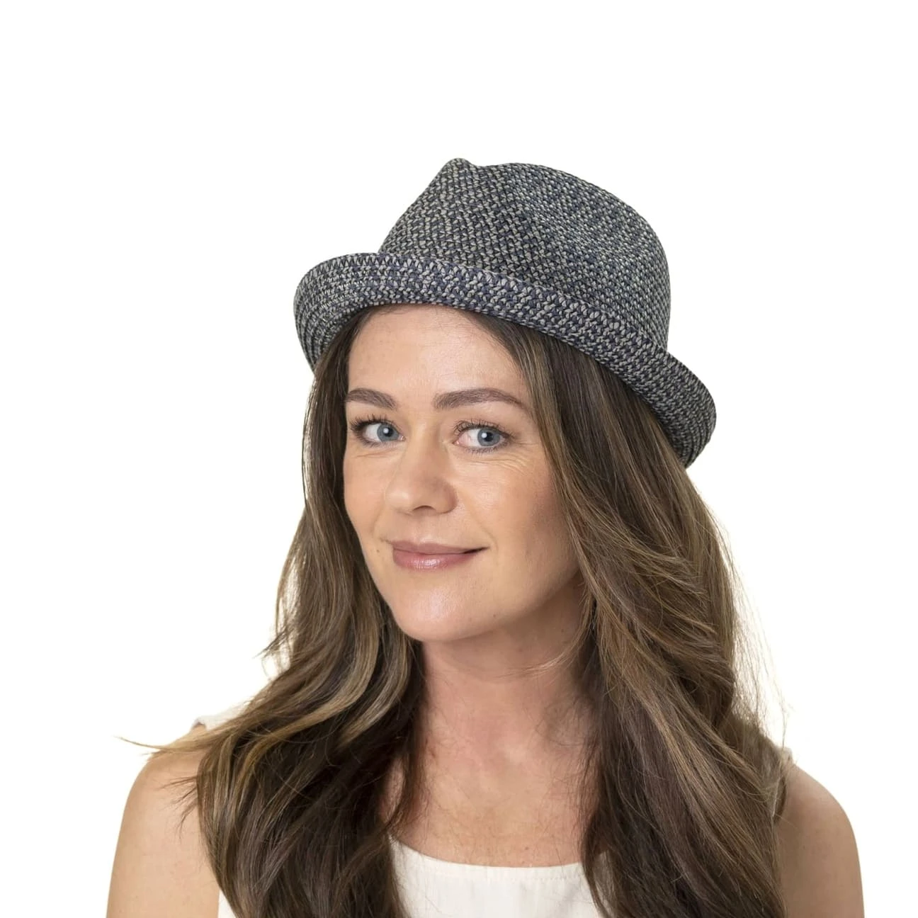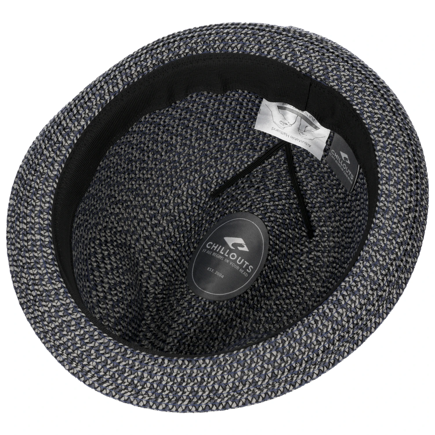 Der Player-Strohhut by Chillouts präsentiert sich in einem modernen, dunkelblau melierten Design.