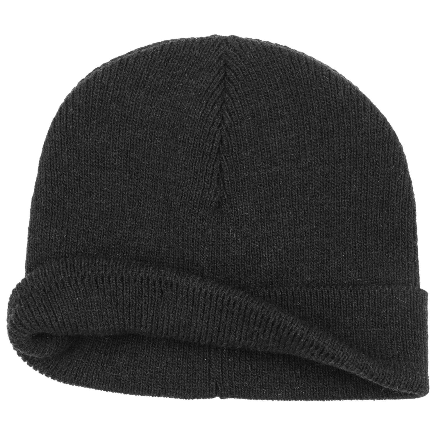 Im betont minimalistischen Design präsentiert sich die Beanie mit Rippstrickmuster und breitem Umschlag.