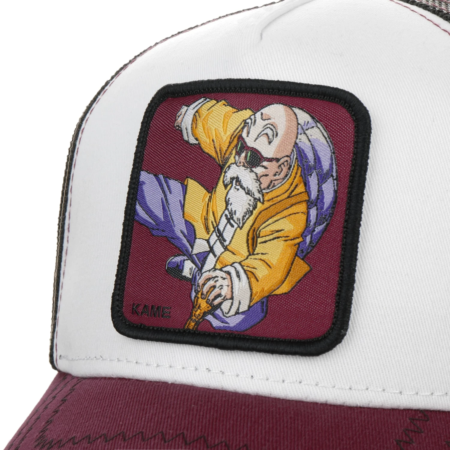 Das hervorstechende Merkmal der Dragon Ball Muten Roshi Trucker Cap aus dem Hause Capslab ist das luftige Netzteil am Hinterkopf, das für eine allzeit gute Durchlüftung sorgt.
