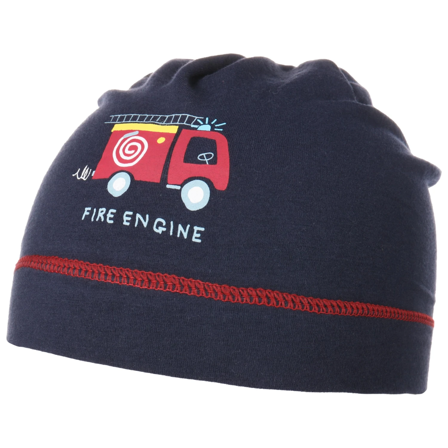 Der Druck zeigt die schöne Illustration eines Feuerwehrtrucks – inklusive Leiter und Schlauch. Eine rundum verlaufende Ziernaht verleiht dem kinderfreundlichen Design der sorgfältig verarbeiteten Kopfbedeckung zusätzliche Dynamik. Das Material aus Baumwolle und Elasthan bietet einen hohen Tragekomfort mit viel Flexibilität.