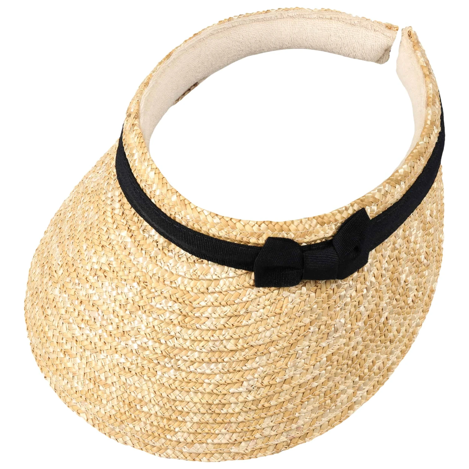 Der schattenspendende Schirm aus schimmerndem Naturstroh wird von einem eingearbeiteten Reifen gehalten, der sich flexibel um den Kopf legt und selbst bei Aktivitäten nicht schnell verrutscht. Durch die klassische Ripsbandgarnitur mit femininer Schleife erhält der komfortable Sonnenschutz einen pfiffig eleganten Abschluss.