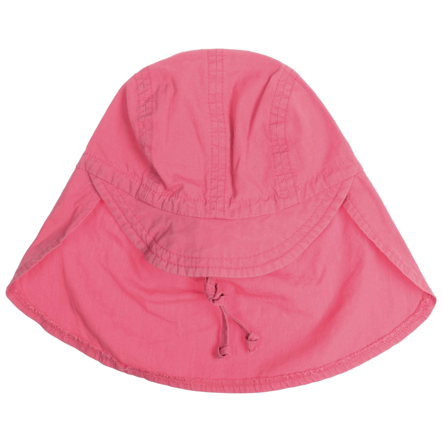 Bis zur Nasenspitze seiner kleinen Lady fällt der Schatten des Visors, während sich der Nackenschutz über den Rücken fallen lässt, um sie Sonne fernzuhalten.