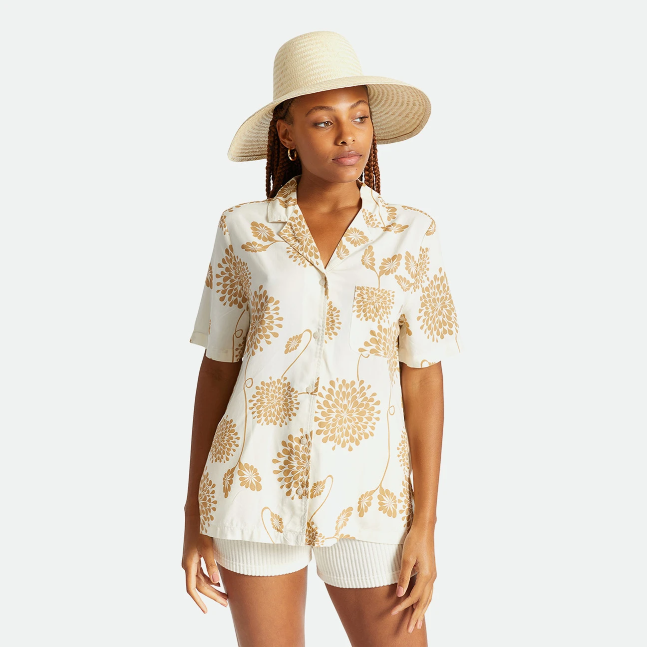 Formvollendet präsentiert sich der Schlapphut von Brixton, der aus flexiblem, sommerleichtem Stroh verwoben natürliche Schönheit ausstrahlt.