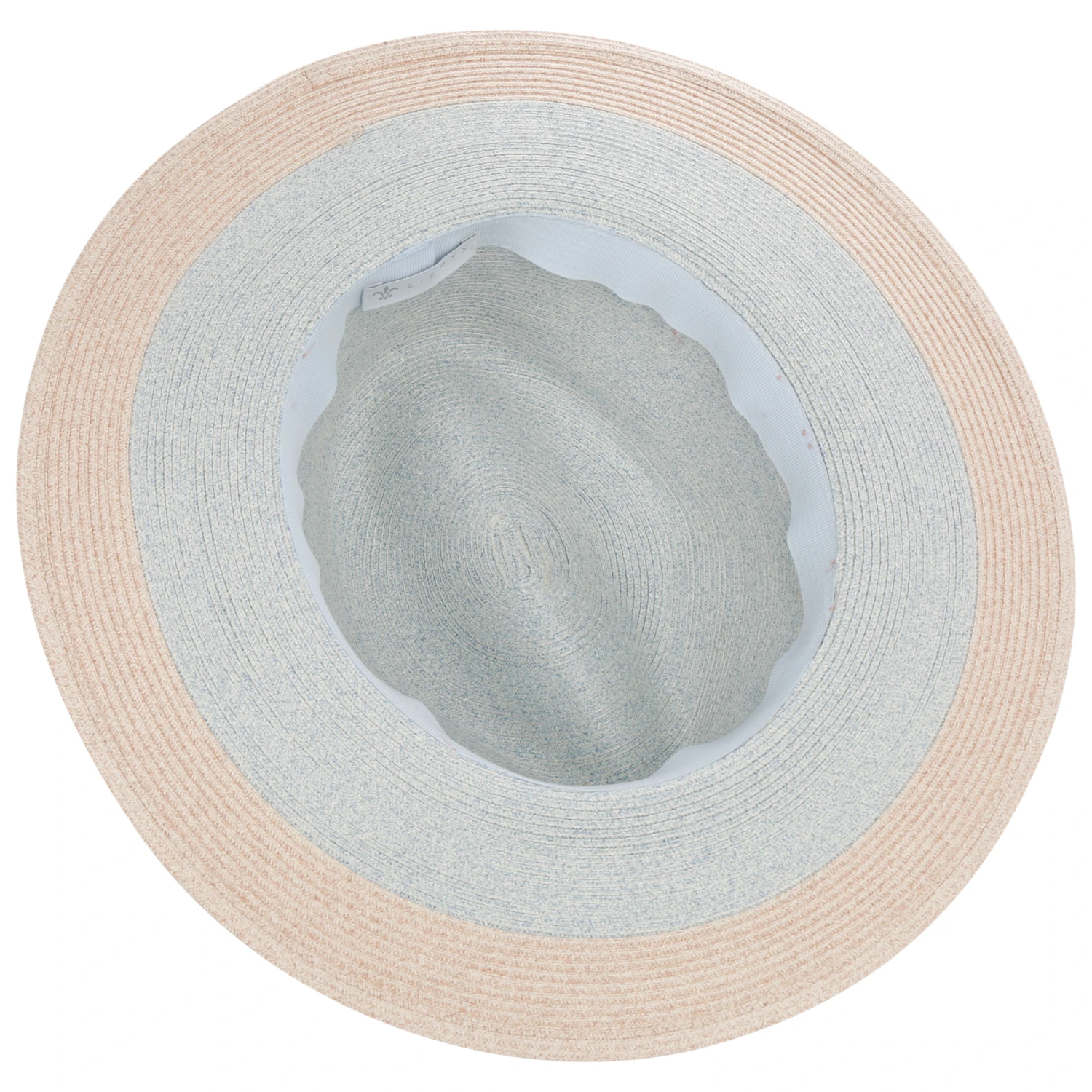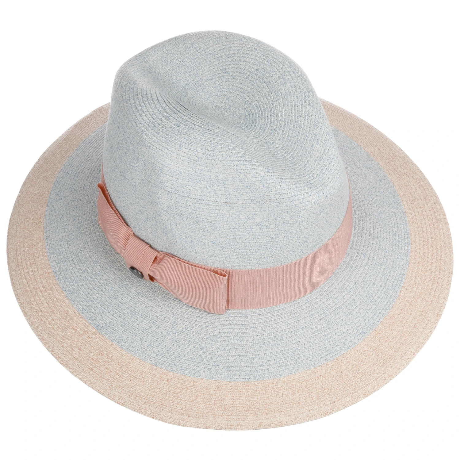 Ein Blickfang des Designs ist die schöne große Schleife, die auf dem zart schimmernden Ripsband der Kopfbedeckung platziert ist. Der romantische Charakter des Dekors steht im reizvollen Kontrast zu den tiefen Kniffen in der Krone, die an einen Westernhut erinnern.