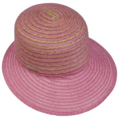 Verschiedenfarbige Borten aus 100% Stroh machen die gestreifte Schute von Seeberger zum modischen Blickfang.