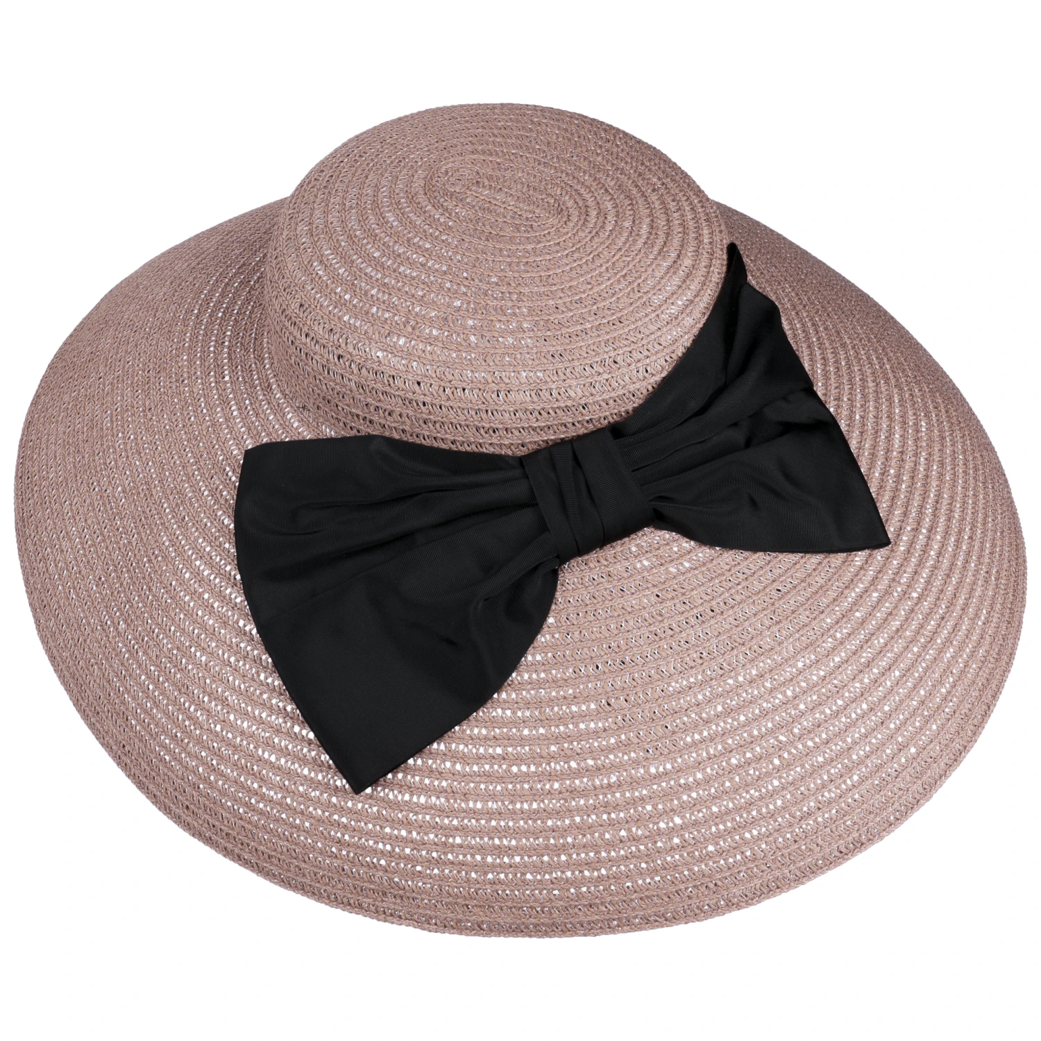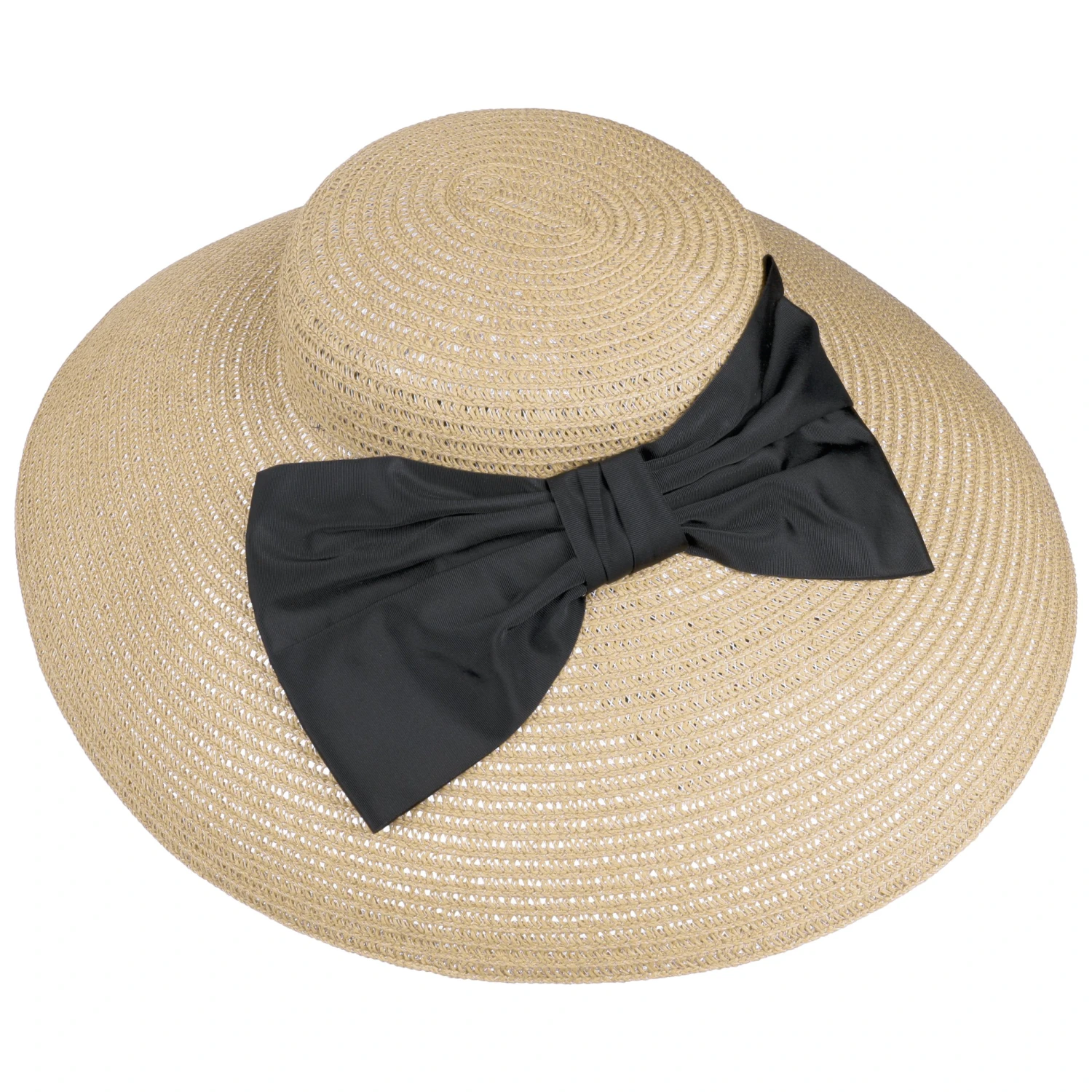 Das elegante Modell begeistert durch seine außergewöhnliche Form mit extrabreiter Krempe. Ein breites Kinnband in Kontrastfarbe hält den Damenhut auch bei Wind sicher am Kopf. Die formschöne Kopfbedeckung ergänzt ein stilvolles feminines Sommer-Outfit, beispielsweise für eine Hochzeit am Strand oder eine Gartenparty, wunderbar.