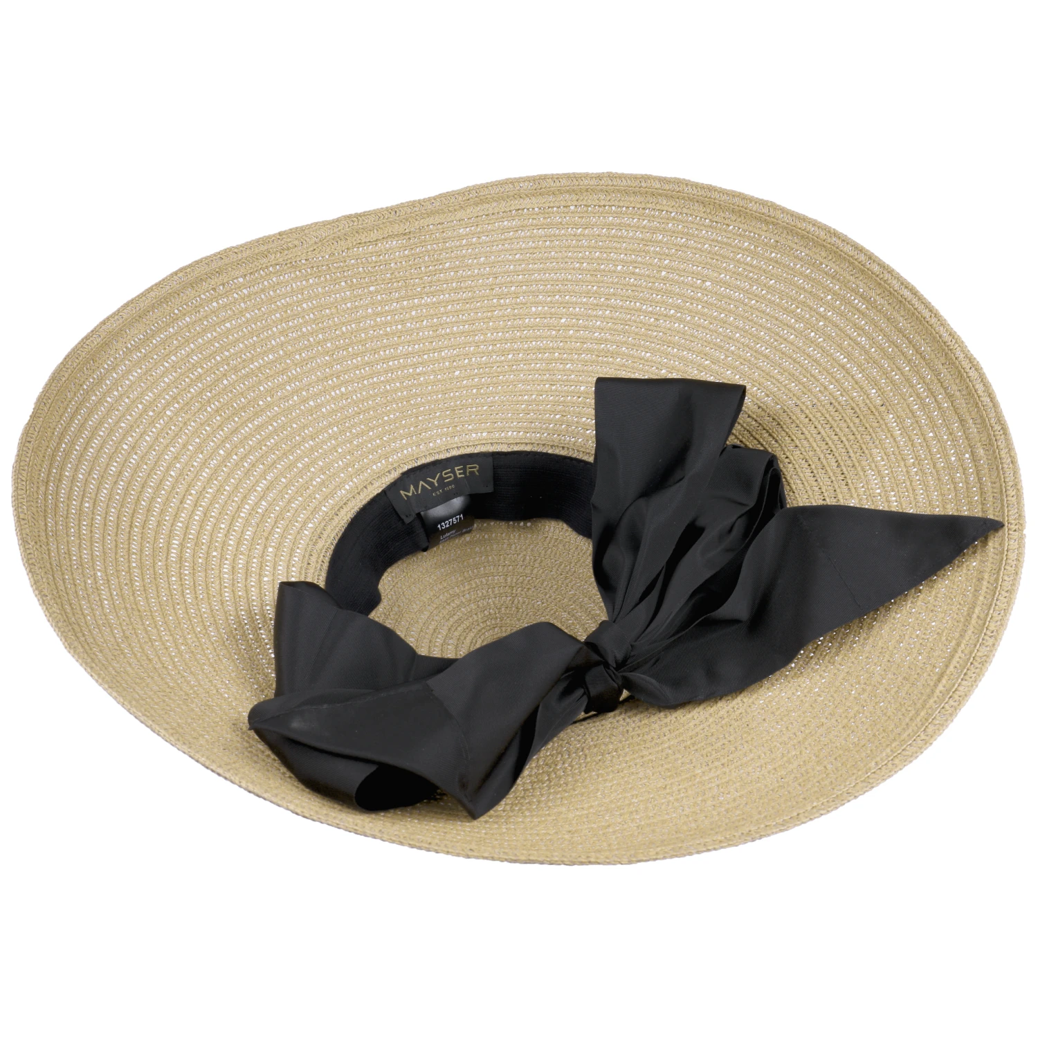 Der handgefertigte Hut von Mayser besteht aus einem sommerlich leichten, luftdurchlässigen Materialmix mit hohem Papierstrohanteil.