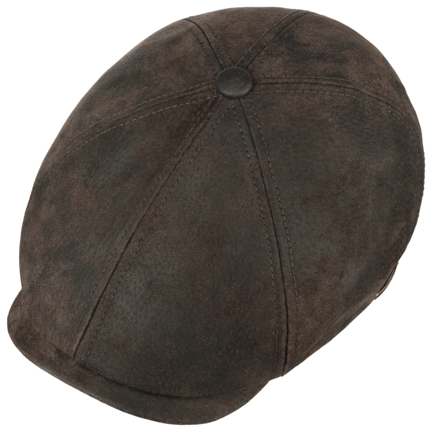 Das Echtleder der sechsteiligen Schirmmütze wirkt alt und authentisch, fühlt sich dennoch samtig zart an.