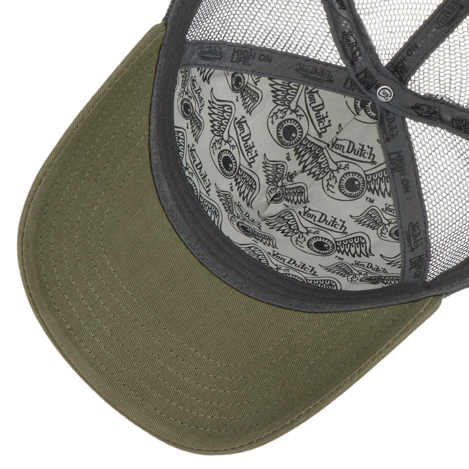 Der vorgebogene Schirm hat eine Länge von 7 cm, während die Kopfhöhe 9 cm beträgt.