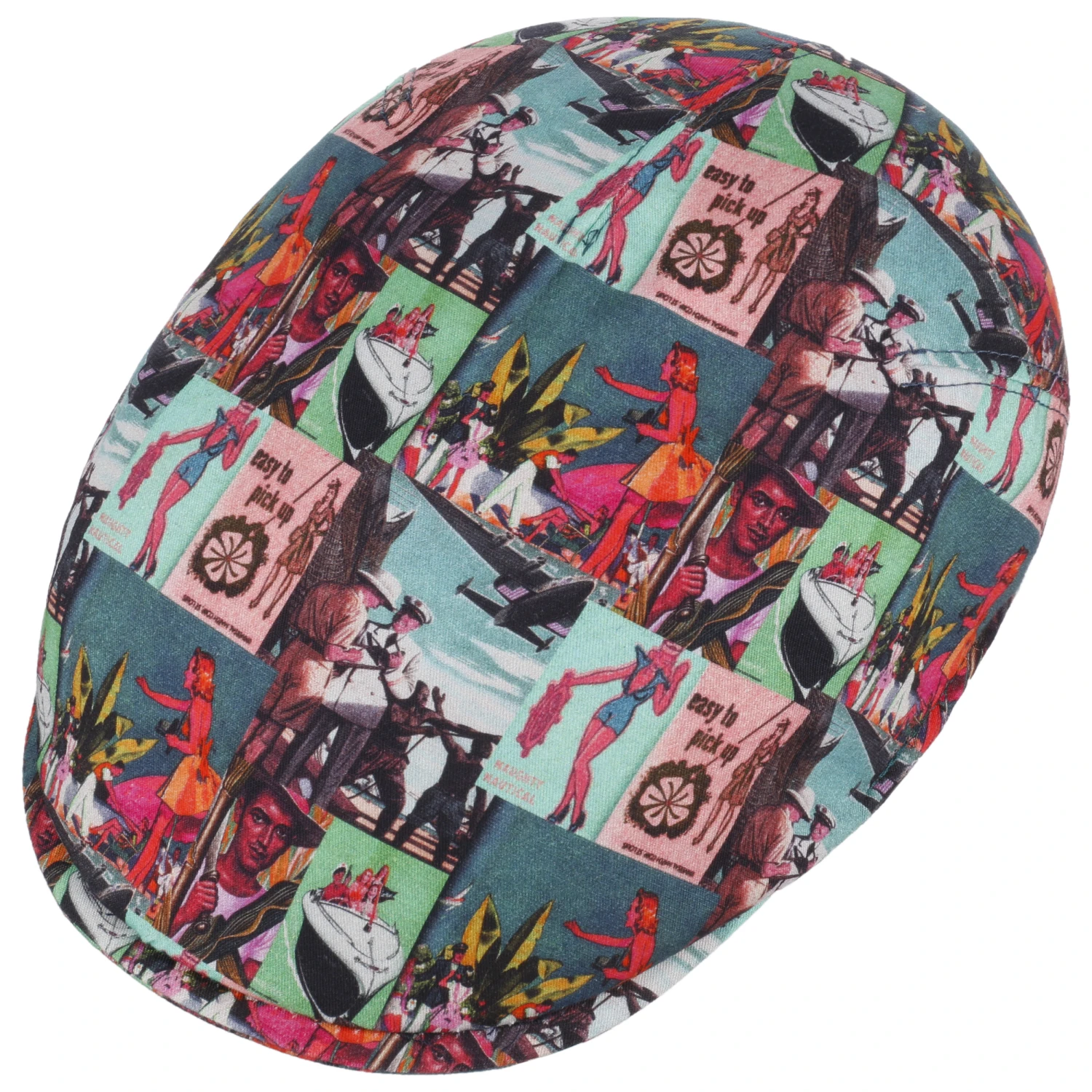 Sie fällt durch ihr originelles Design auf. Eine bunte Collage im Retro-Stil ziert das Obermaterial der sommerlich leichten Kopfbedeckung. Bild für Bild reihen sich Pin-ups, Alltagsszenen und Urlaubsmotive im Retro-Stil aneinander. Die hohe Qualität des bedruckten Stoffs macht die sorgfältig verarbeitete Mütze mit Schirm zum textilen Kunstwerk.