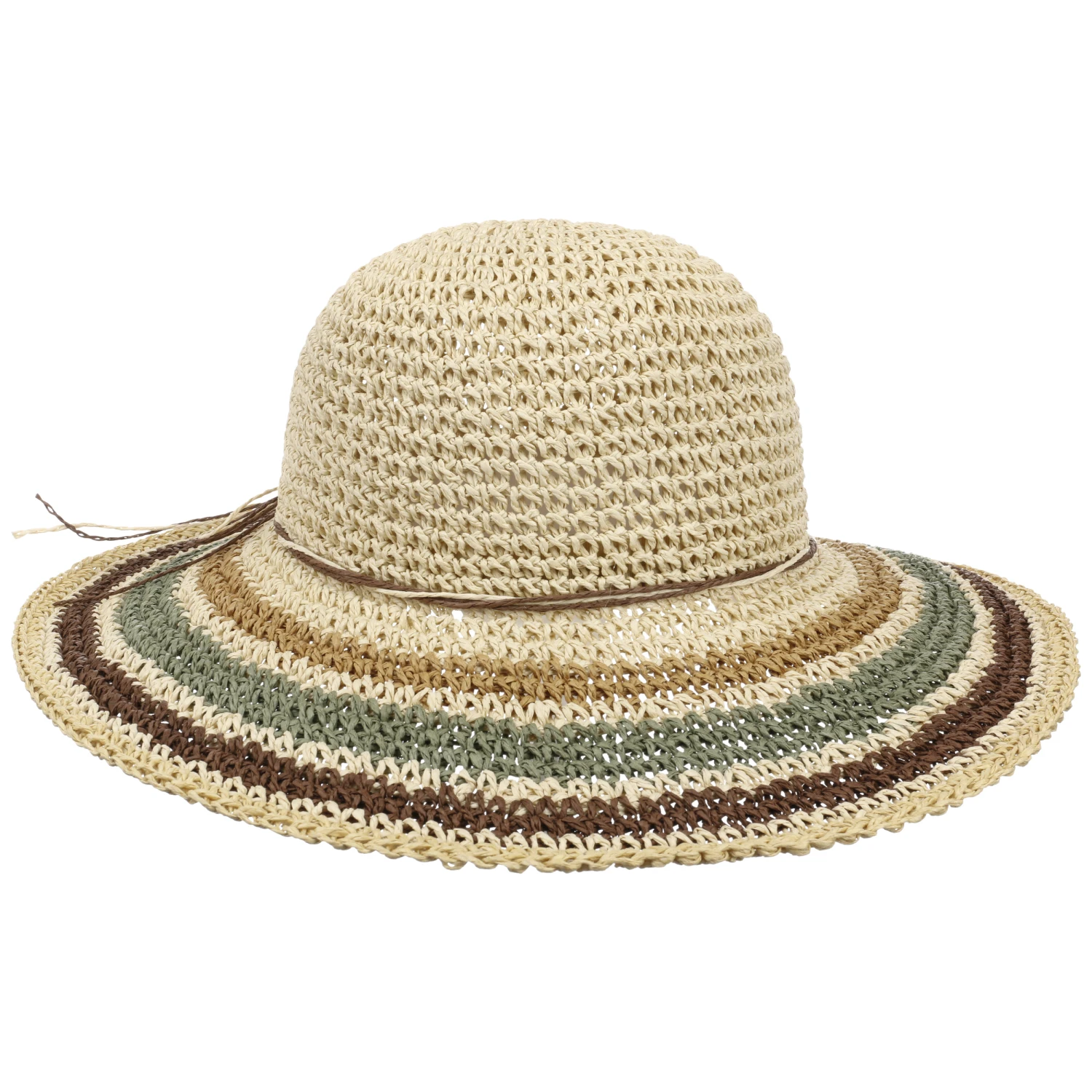 Als Garnitur fungieren mehrere leicht und unbeschwert um die Krone gewundene Bänder. Die breite Krempe mit ihren mädchenhaften Ringeln lässt sich genau so arrangieren, dass Gesicht oder Nackenpartie vor aufdringlichen Sonnenstrahlen geschützt sind.