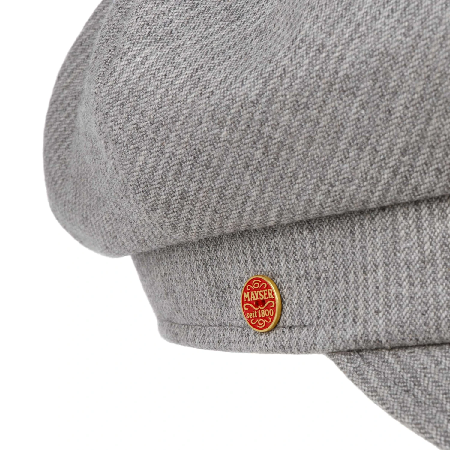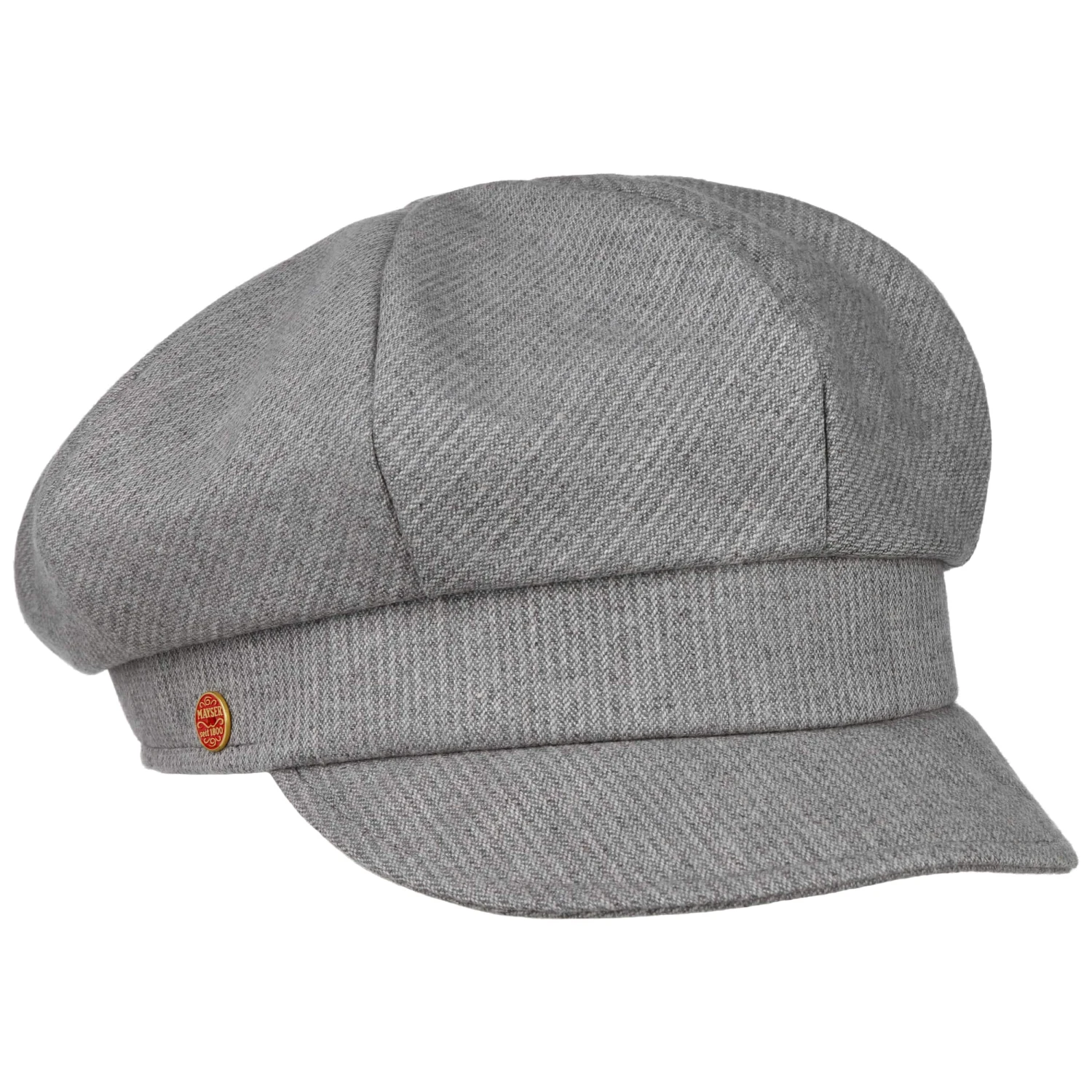 Die Ballonmütze aus dem Hause Mayser fällt durch ihr dezentes Streifenmuster auf.