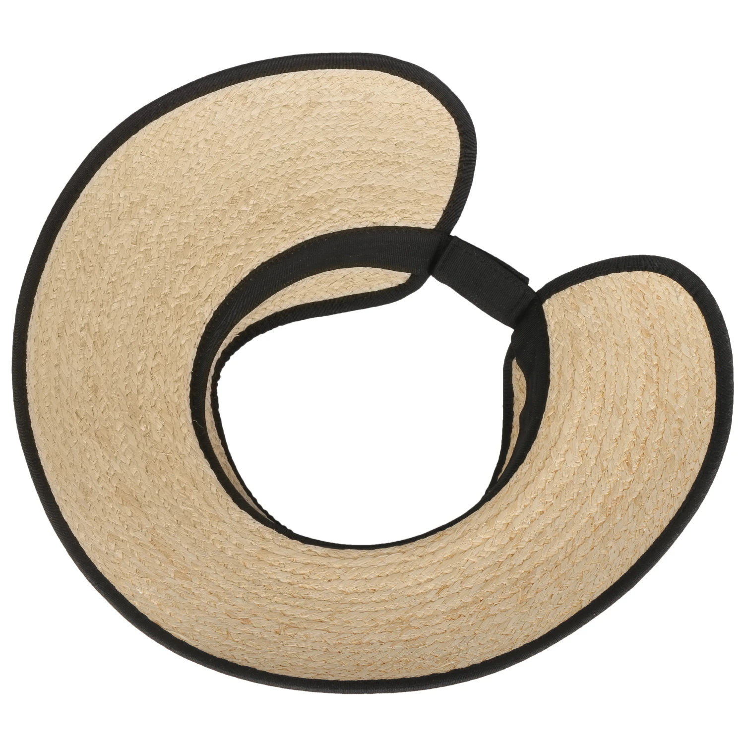 Dicht geflochtene Strohfasern halten blendende Sonnenstrahlen aus dem Gesicht. Das Haupt bleibt frei und kann einen kühlenden Luftzug genießen. Das farbig abgesetzte Garniturband und der Paspeleinfass um die Krempe schaffen aparte Kontraste.