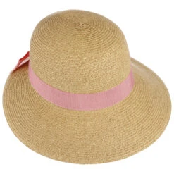 Mit viel Liebe zum Detail ist er aufwendig von Hand gefertigt. Einen sommerlichen Kontrast bilden das einfarbige Ripsband mit Ziernähten und Markenpin sowie der farblich abgesetzte Rand der breiten Krempe. Damit verleiht der lässige Sonnenhut jedem Outfit eine lockere Eleganz.